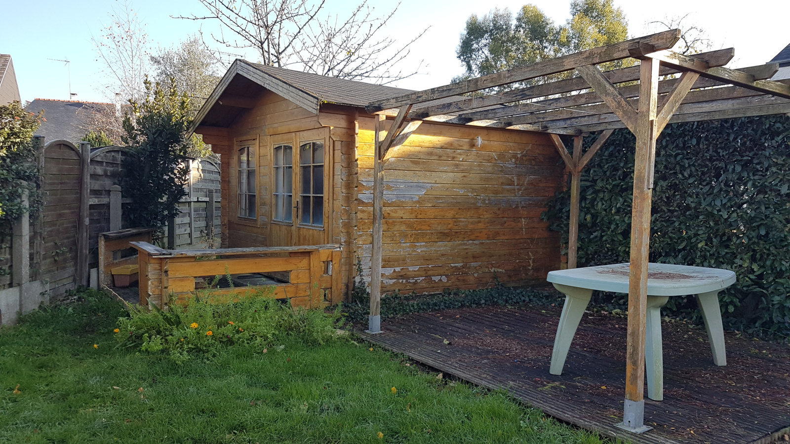 Saint Erblon, Maison 4 chambres de 116m² habitables sur agréable terrain avec terrasse, châlet de jardin et pergola. Elle offre au Rdc, une entrée avec placard, une pièce de vie ouvrant sur la terrasse, cuisine aménagée semi équipée, une grande arrière-cuisine/ buanderie, un wc. A l'étage, un dégagement donne accès à 4 spacieuses chambres non mansardées sur parquet, dont 1 de 16,5m² avec grand placard/dressing, salle de bains et wc séparé. Garage attenant. Environnement calme et proximité immédiate de toutes commodités (écoles, collège, commerces, bus réseau STAR, salles de sport). Chauffage gaz de ville.