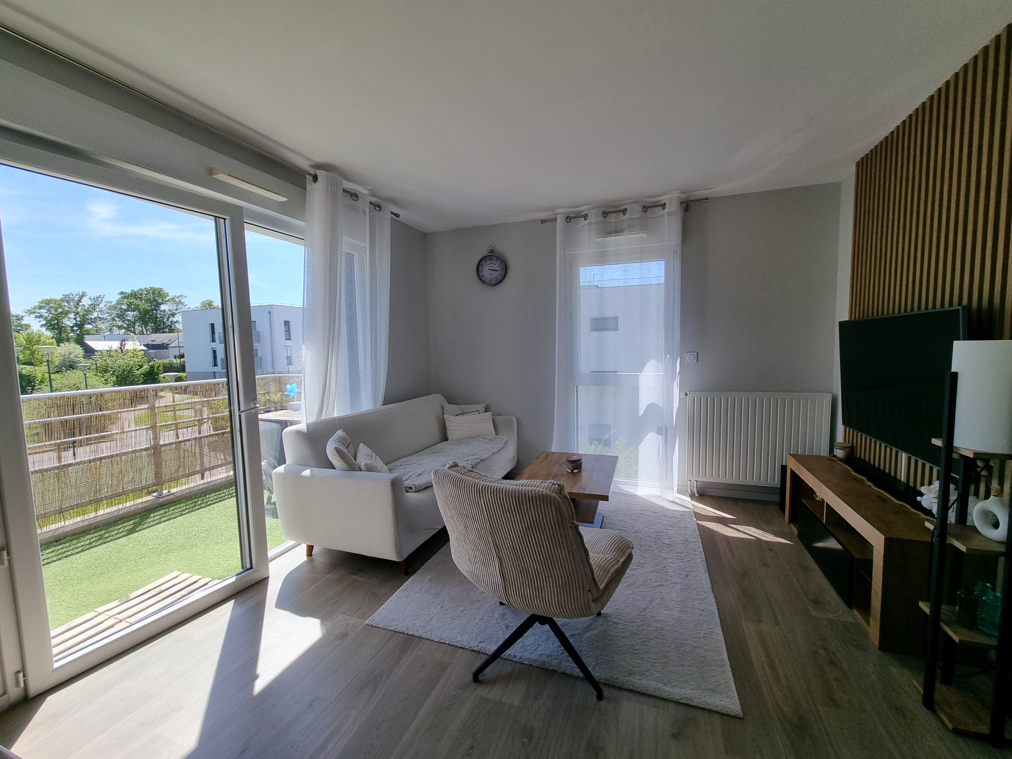 Appartement T3 à Saint-Erblon, 68m² , 2 ch, cuisine équipée, balcon Sud, parfait état.