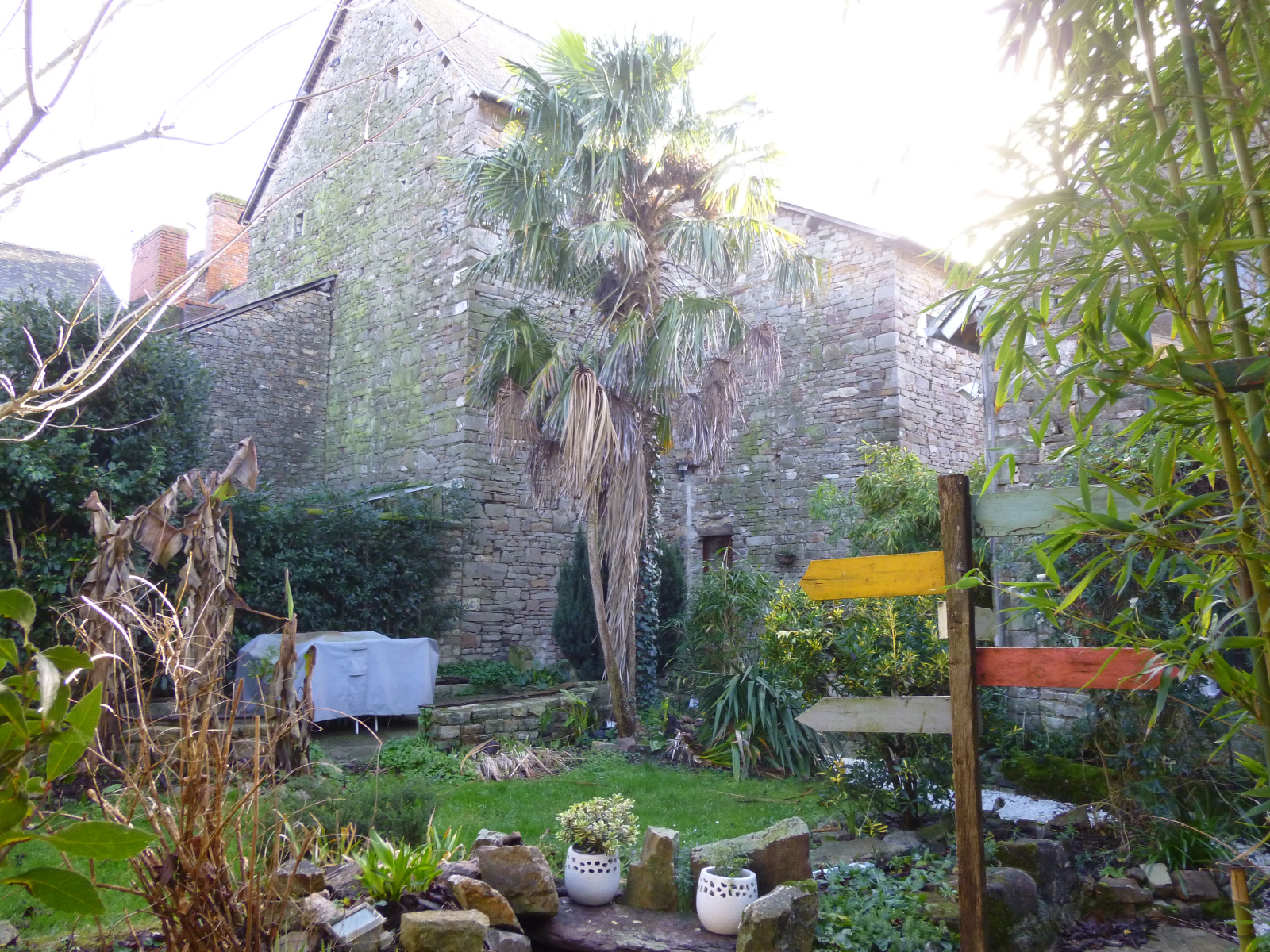 Bourg-des-Comptes (35890)DELIN Immobilier Saint-Erblon, Sacha DELIN O7 77 99 65 36 vous propose ce bien rare à la vente. Cette ancienne chapellenie a traversé les siècles pour aujourd'hui satisfaire le désir de nouveaux acquéreurs de pouvoir habiter dans une demeure chargée d'histoire. A 25 km au Sud de Rennes, à proximité immédiate des services de la commune( transports, commerces, écoles), cette propriété d'environ 180m² habitables se compose d'une entrée sur sol en pierres, un salon séjour de 40m² avec cheminée et pierres apparentes, une chambre ou bureau de 25m² avec très beau parquet ancien, pierres, poutres et cheminée ancienne, une vaste cuisine aménagée avec ilot et cellier attenant. Un magnifique escalier hélicoïdal en pierres donne accès à l'étage qui comprend trois chambres dont 2 de 17m², une avec mezzanine, une autre avec dressing, une spacieuse salle de bains avec baignoire, douche et double vasques. Toilettes avec vasque. L'escalier continue vers un niveau supérieur desservant un vaste grenier de 64m² ( aménageable) avec ouvertures existantes. Une cave de 25m² est présente sous une partie de la maison. A l'extérieur, un jardin clos de murs en pierres type patio nous invite à profiter d'une pièce ouverte sur l'espace terrasse, bassin, barbecue dans une ambiance exotique (bananier, palmer, cordyline, yucca). Une dépendance en pierres d'environ 70m² au fond du jardin permet d'envisager des projets d'aménagements. Le patio est fermé sur la route par un grand garage de 70m² avec étage (toiture neuve) autorisant également des aménagements éventuels. Ce bien d'exception satisfera des propriétaires à la recherche d'authenticité, de tranquiilité, de potentiels pour déveloper une activité (chambres d'hôtes...).