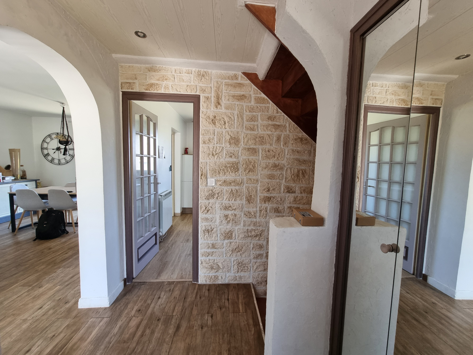 Dans le centre bourg, idéalement situé au fond d'une impasse, ce pavillon indépendant d'environ 100m² habitables (112m² utiles) offre une agréable pièce de vie exposée Sud avec poele à pellets, la spacieuse cuisine attenante au séjour a été aménagée et équipée fin 2017, une chambre avec salle d'eau et lingerie/dressing sont à 1/2 niveau. 3 chambres avec salle de bains à l'étage. Garage 2 voitures en sous-sol, cave et rangement. La maison a connu de nombreux travaux depuis 2016 ( changement de menuiseries porte et Vélux, électricité, cuisine, pôele, déco, extérieur). Agréable terrain avec terrasse au Sud sans vis à vis. Accès au bus, écoles et commerces à pied. Maison fonctionnelle bien située, prête à accueillir une famille.