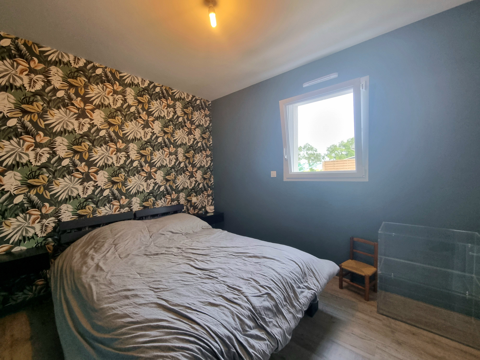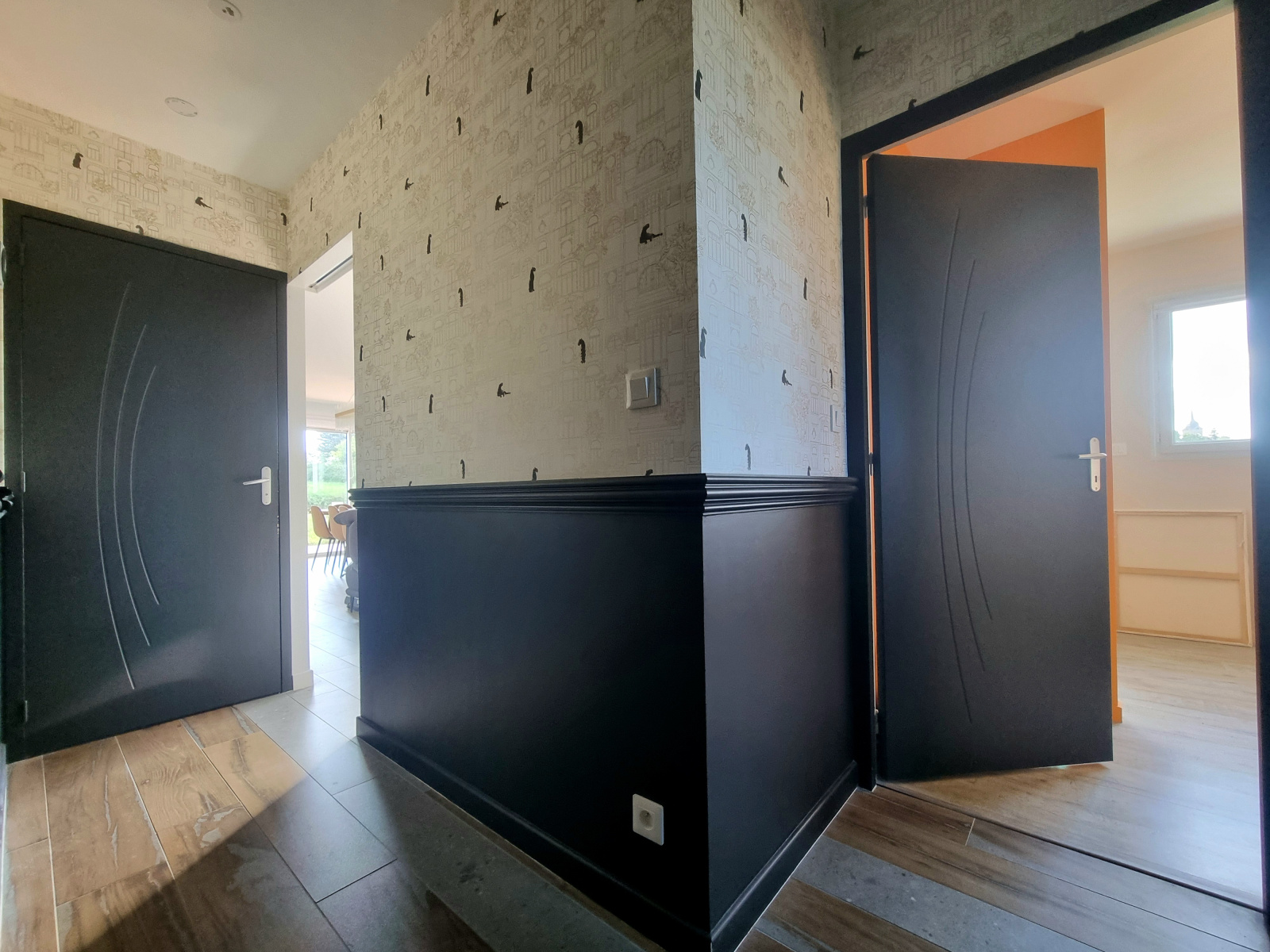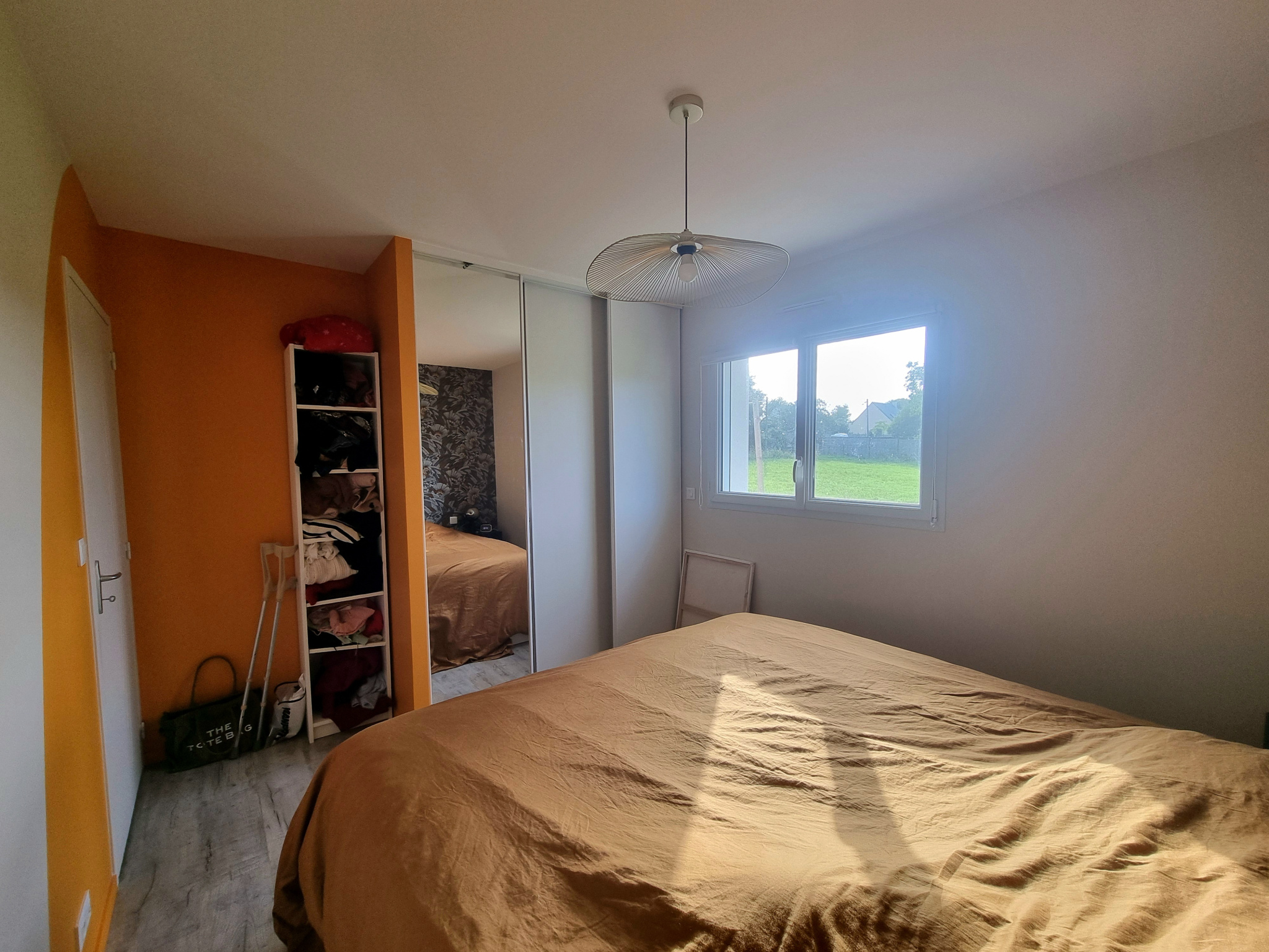 Dégagement desservant la partie nuit, deux chambres exposées Est avec placards et une chambre exposée Ouest également avec placards, salle d'eau avec douche à l'italienne et wc indépendant avec lave-mains.
