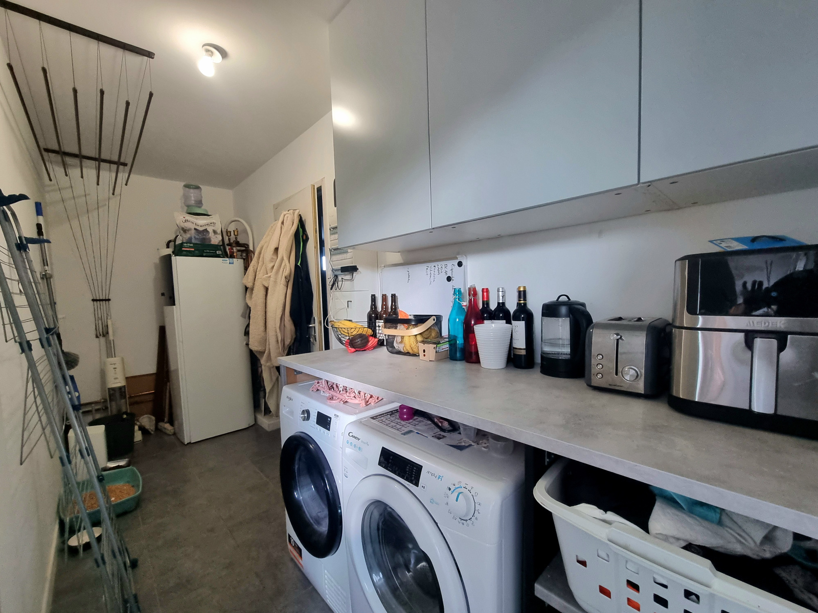 Côté pratique, une arrière cuisine pouvant faire office de buanderie avec présence de branchements pour machine à laver, sèche linge et autres.