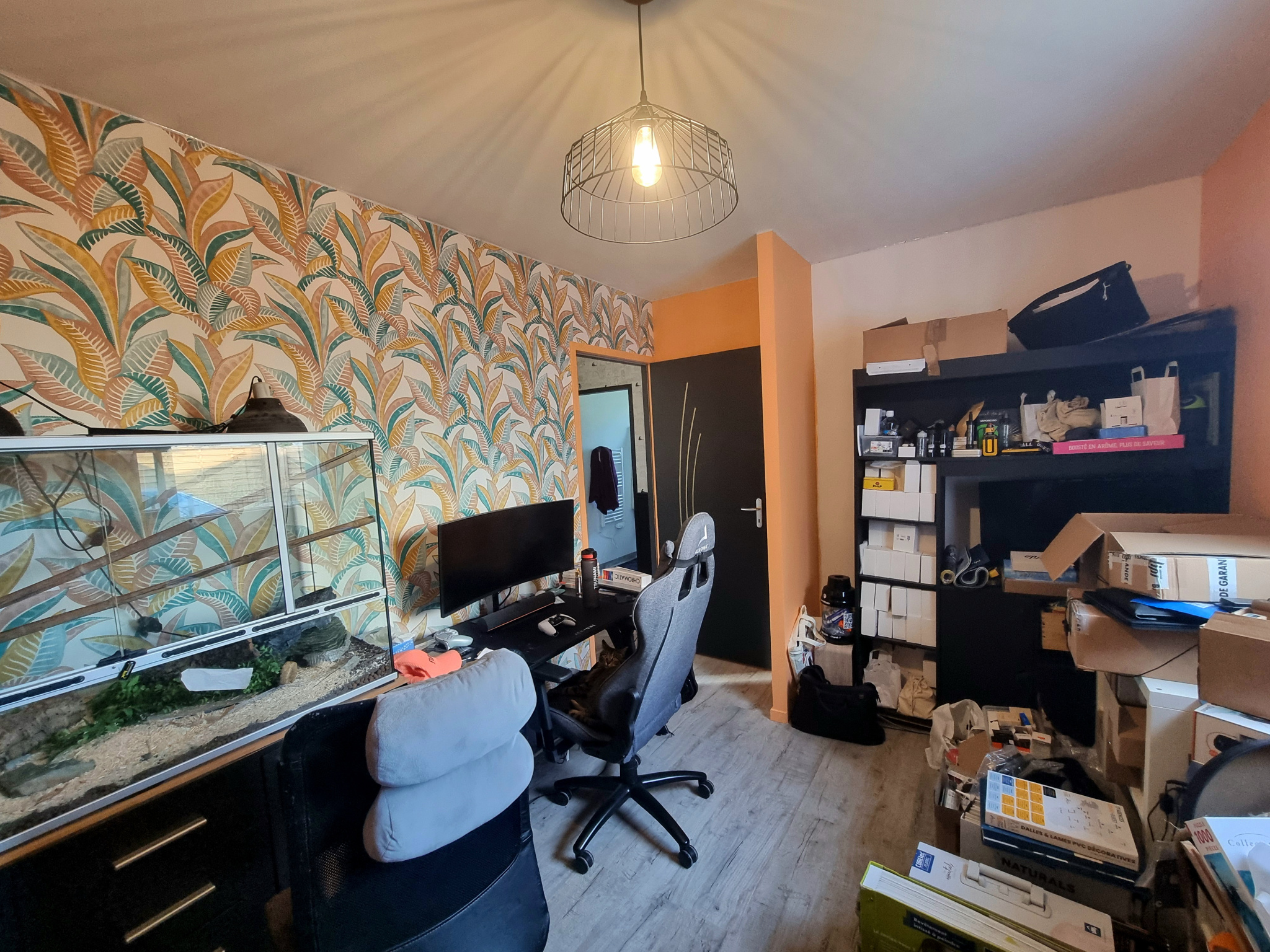 Le garage d'environ 20 m² a été diviser afin de créer le cellier d'environ 6.80 m². Possibilité de retrouver le volume initial du garage aisément au besoin (cloison en OSB).
