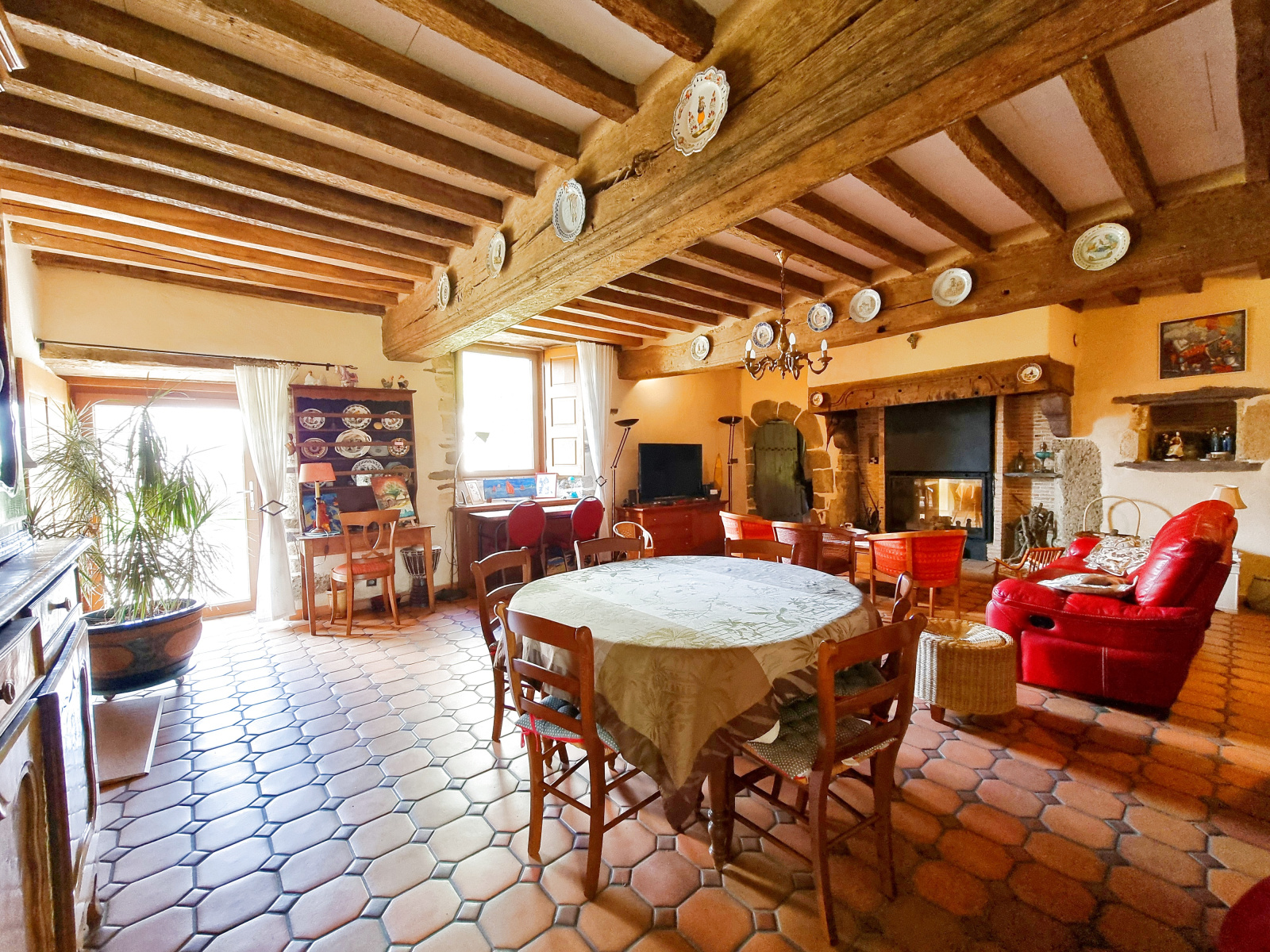Le bâtiment principal à usage d'habitation est rénové sur environ 330m². Il comprend au rez de chaussée une salle à manger-cuisine de 37m² avec cheminée, un salon attenant de 45m² exposé Sud, une grande chambre et un bureau de 18m², 2 pièces d'eau dont une prévue en accès PMR. Attenant à la cuisine, une pièce buanderie/cellier avec douche et wc. L'étage vous accueille avec une grande mezzanine -bureau de 38m² et sa cheminée ancienne, une chambre avec cabinet de toilette, une pièce en enfilade de 45m² sur parquet (cheminée) et une magnifique chambre de 25m² avec sa cheminée aux motifs anciens et sa salle de bains privative. A l'étage supérieur, 3 pièces de 15 à 25m².