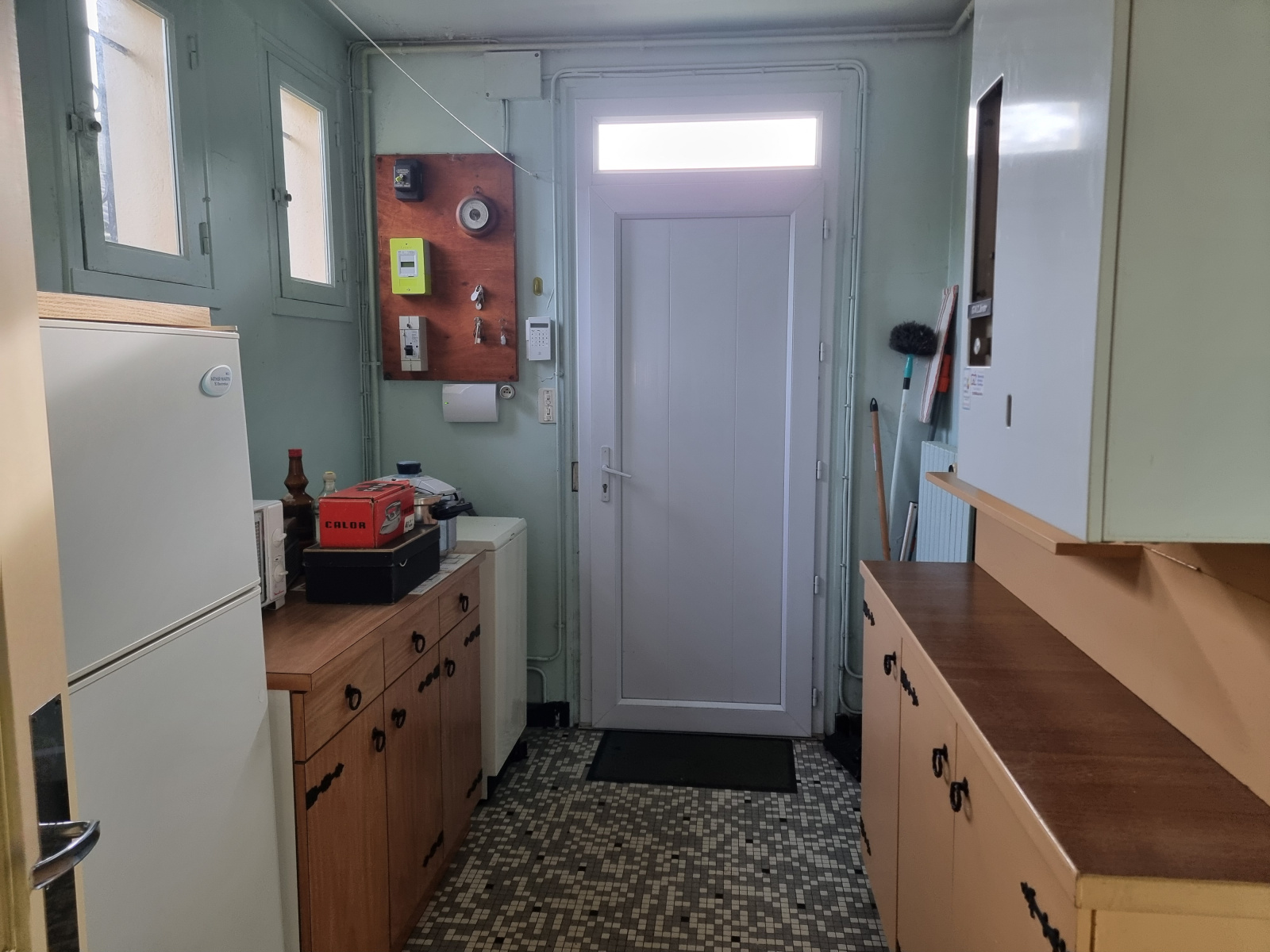 La maison se compose d'une entrée , une cuisine, une arrière cuisine/chaufferie, une pièce de vie avec cheminée ouverte et accès terrasse Sud sur le jardin sans vis à vis, un salon ou chambre ouvert sur le séjour , une chambre, salle d'eau, wc indépendant. Les menuiseries sont en PVC double vitrage avec volets roulants motorisés, chauffage au gaz de ville ( 2005), construction en brique et couverture en ardoise naturelle. La maison est reliée au tout à l'égout.