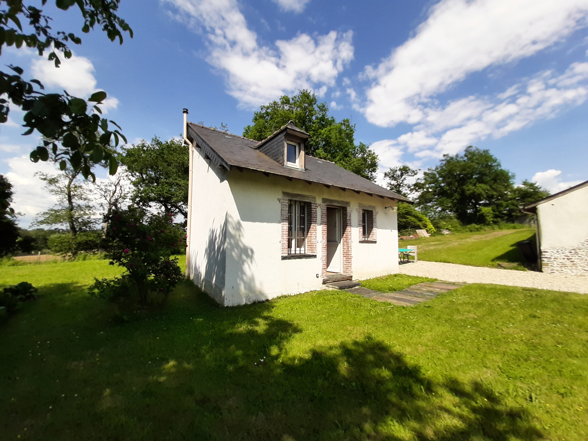 Nouvoitou (35410)Entre Domloup et Nouvoitou, longère de caractère offrant de plain-pied de belles surfaces à projet, actuellement 112m² habitables, potentiel supplémentaire de 160m², volumes originaux, avec dalle béton et un étage à redéfinir. Vaste séjour de 49m², cuisine indépendante équipée de 15m², suite parentale de 35m², pièces annexes, wc. Buanderie avec salle d'eau de 35m² dans un bâtiment annexe. Le lieu offre une belle vue sur la campagne sans vis à vis. Le terrain sur gazon est bien exposé avec terrasses, salon d'été avec cheminée indépendant pour profiter des longues soirées entre amis.Terrain et accès permettant le stationnement de plusieurs véhicules. Non bornée pour le moment la parcelle représente environ 3800m². Possibilité d'avoir du terrain supplémentaire.